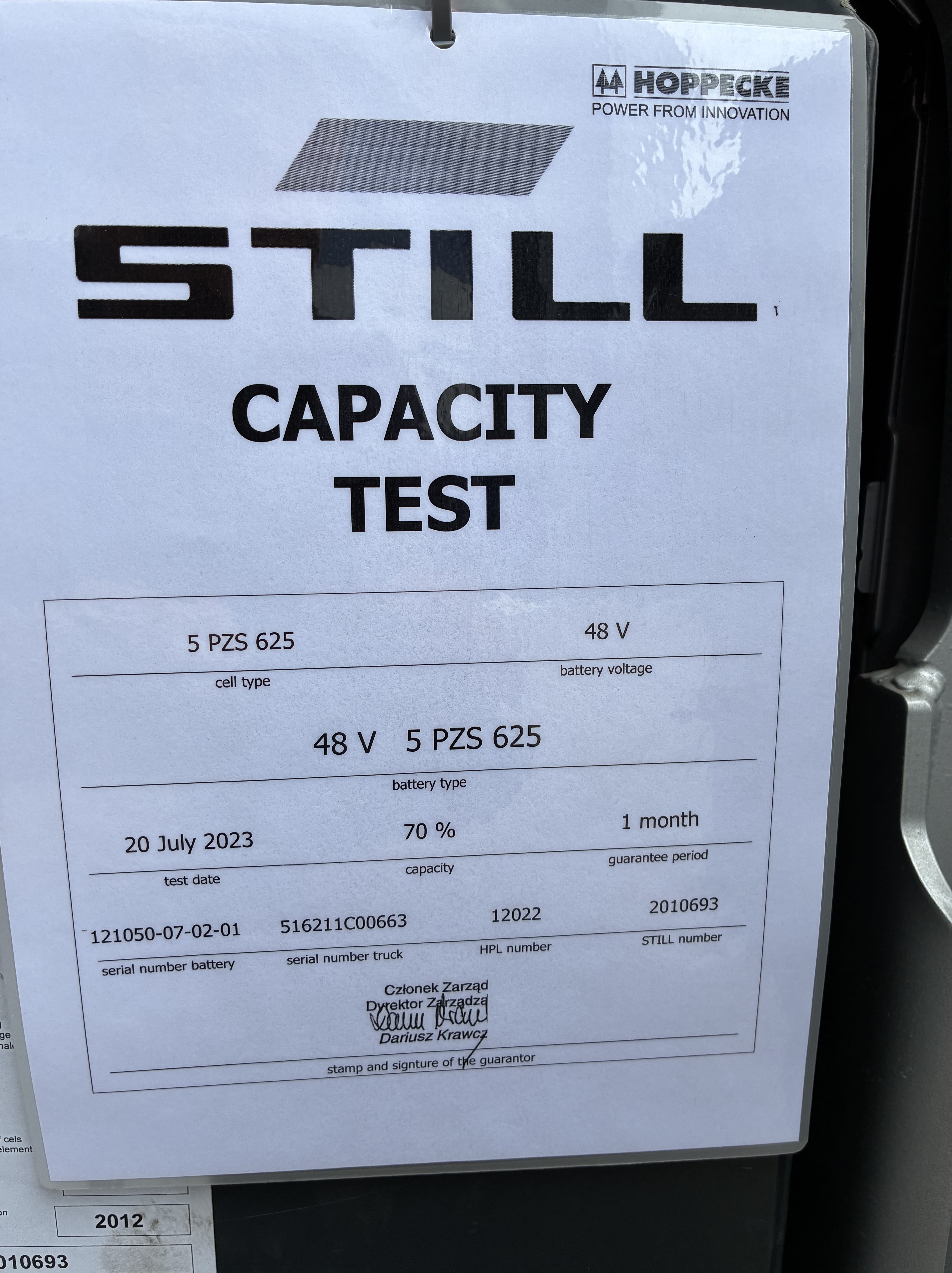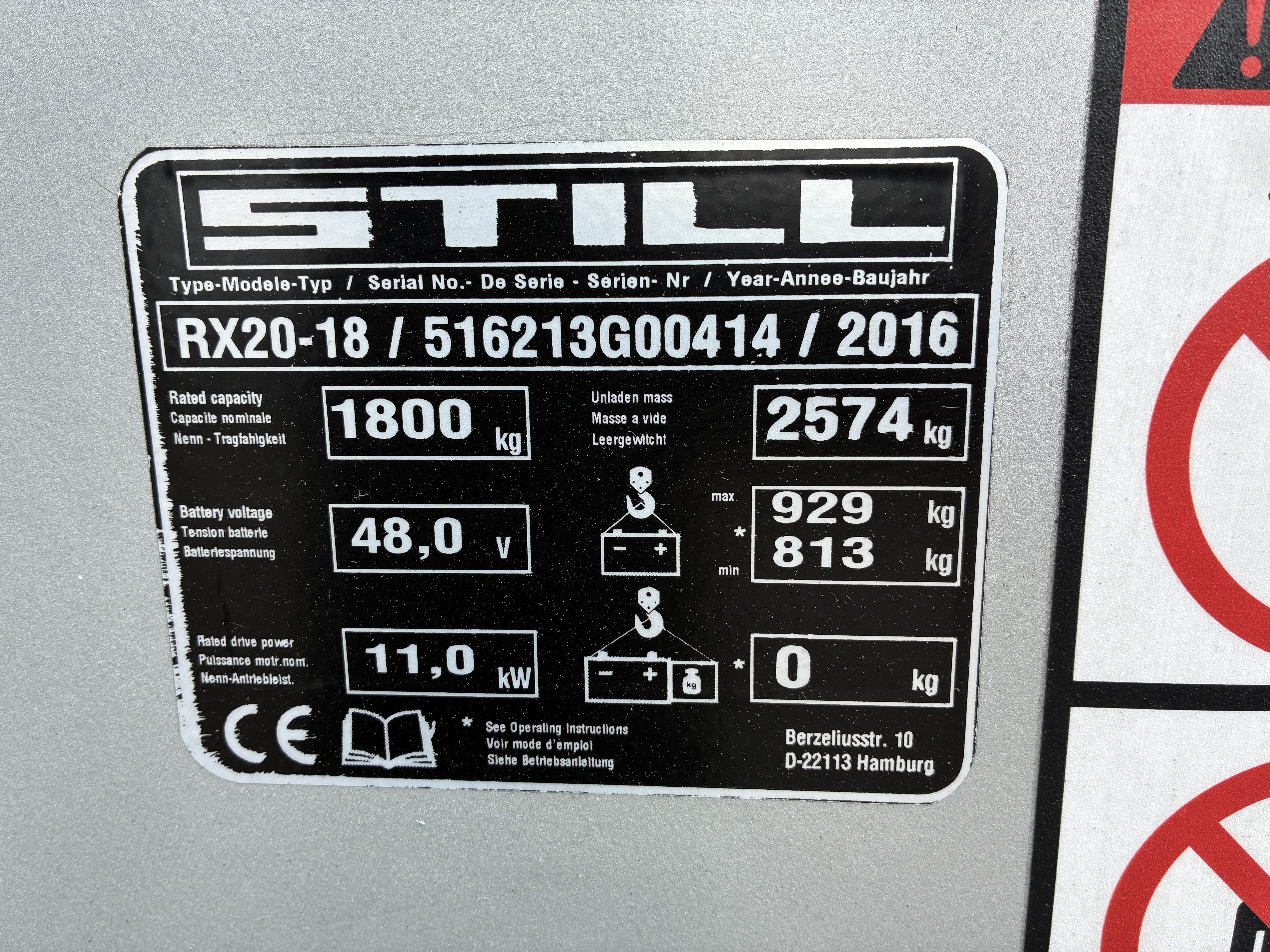 Nieuwe batterij / inrijstelling bestuurdersbeschermdak / integrale sideshift / hydraulische bedieningshendels / schijnwerpers links en rechts voor / safety light