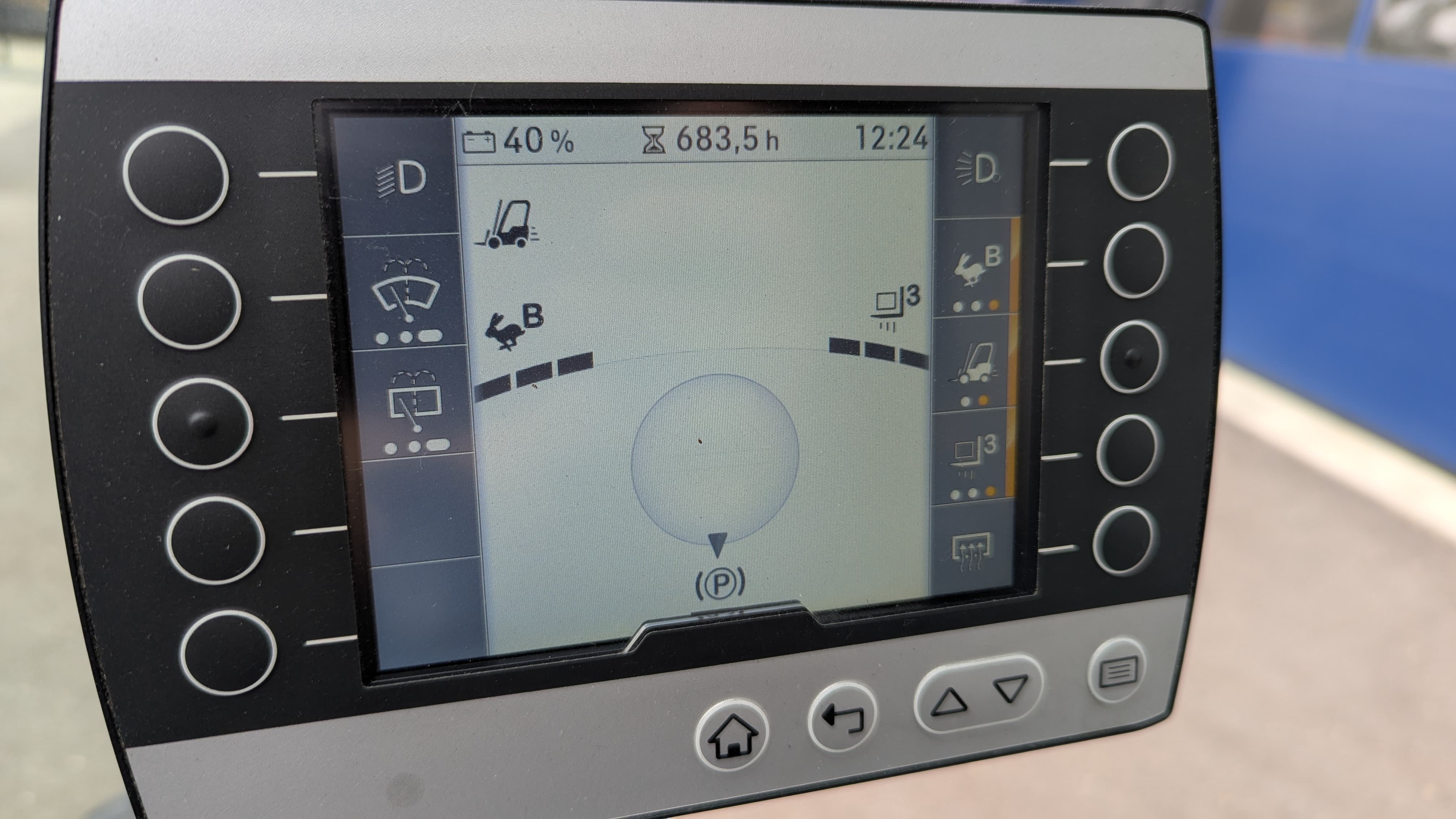 Integrale sideshift / Voor-, dak-, en achterruit / hydraulische bedieningshendels / flitslamp / schijnwerpers voor en achter / Verlichting met knipperen / safety light