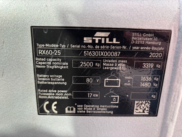 RX 60-25 uit 2020 met lage urenstand / volledige bestuurderscabine met kachel / 3 hydraulische functies / kruishendel bediening / Triplo mast / Sideshift