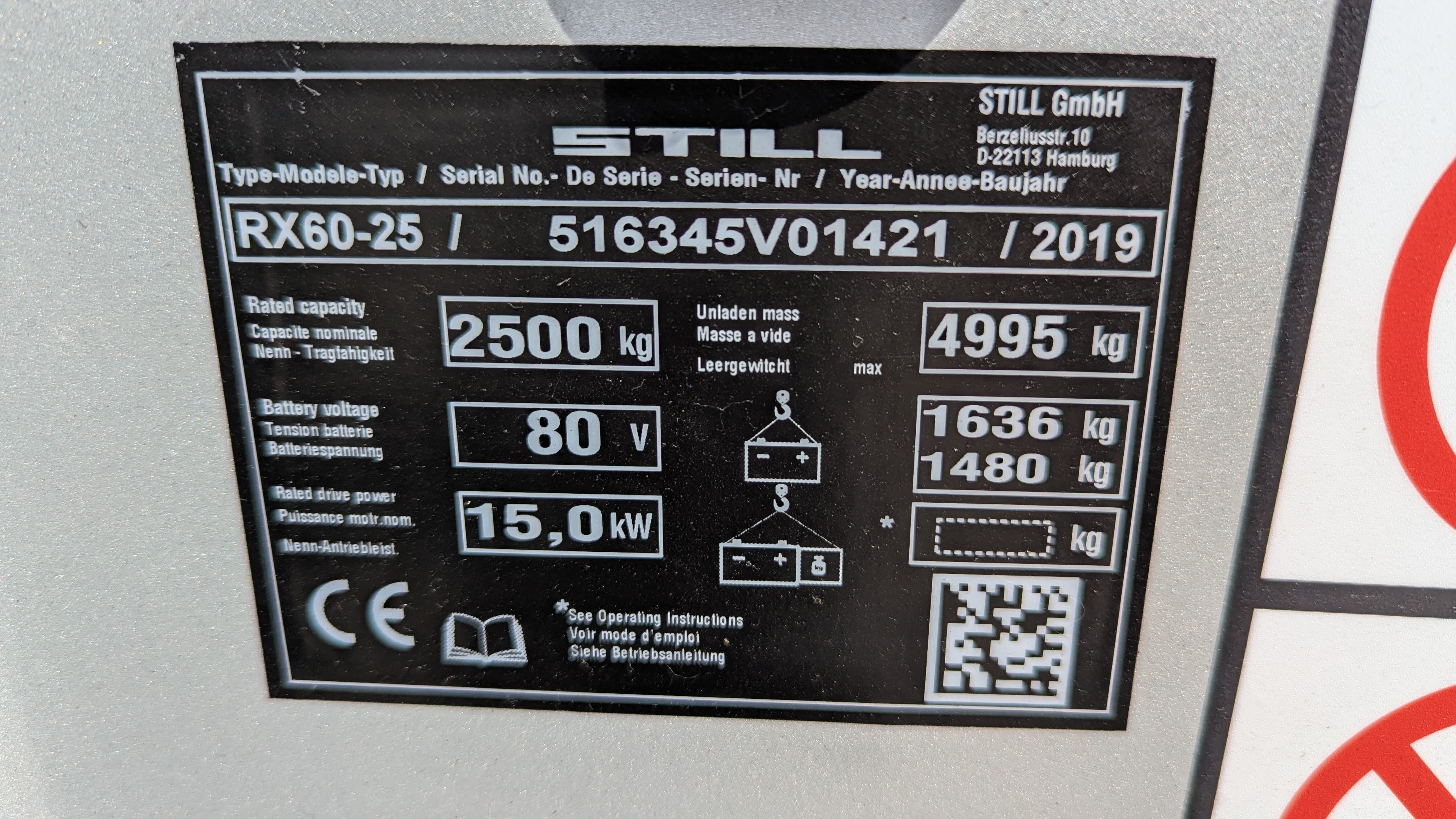 Li-Ion batterij 60,3 kWh / Integrale sideshift / minihendels (2 stuks) / cabine met verwarming / Flitslamp / schijnwerpers voor en achter / safety light.