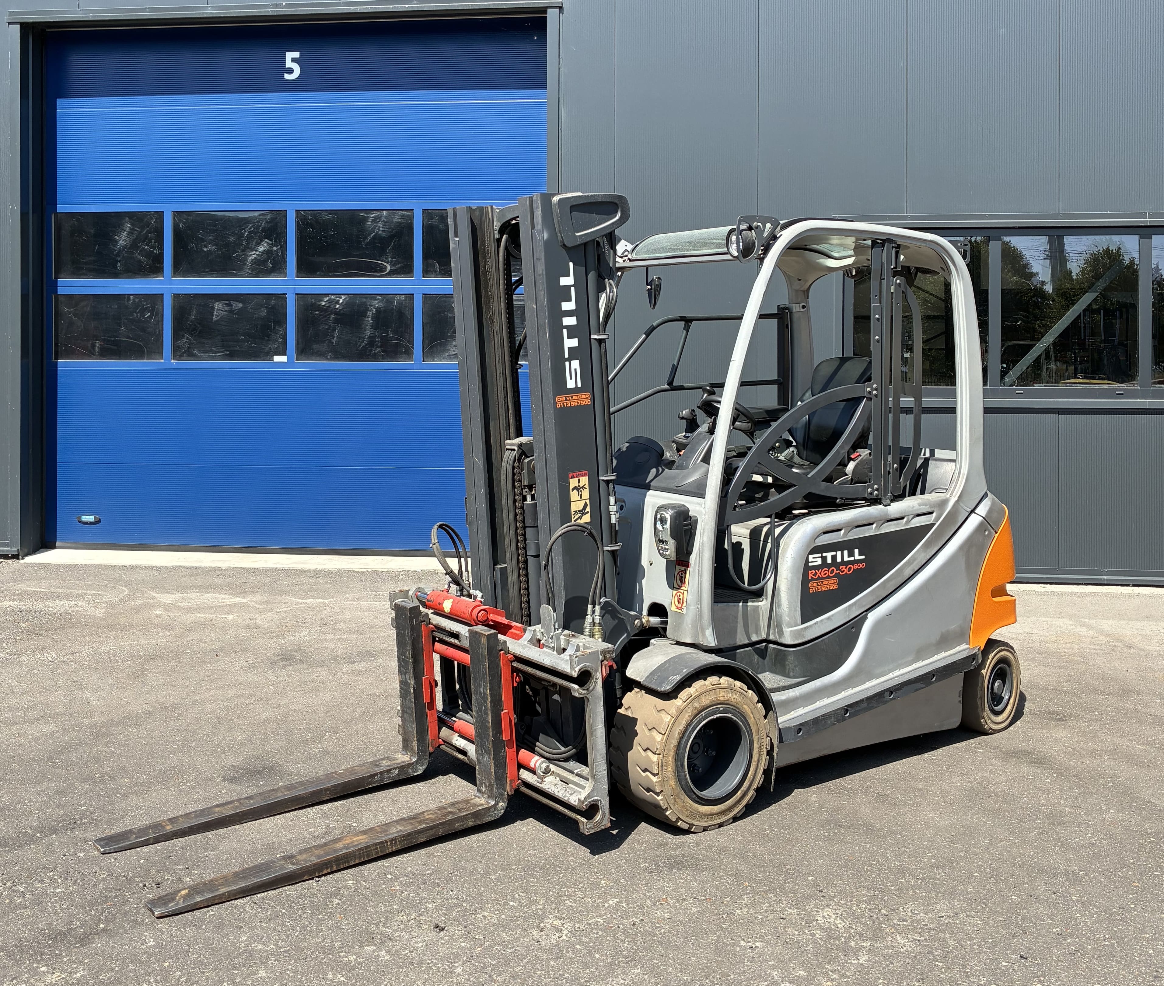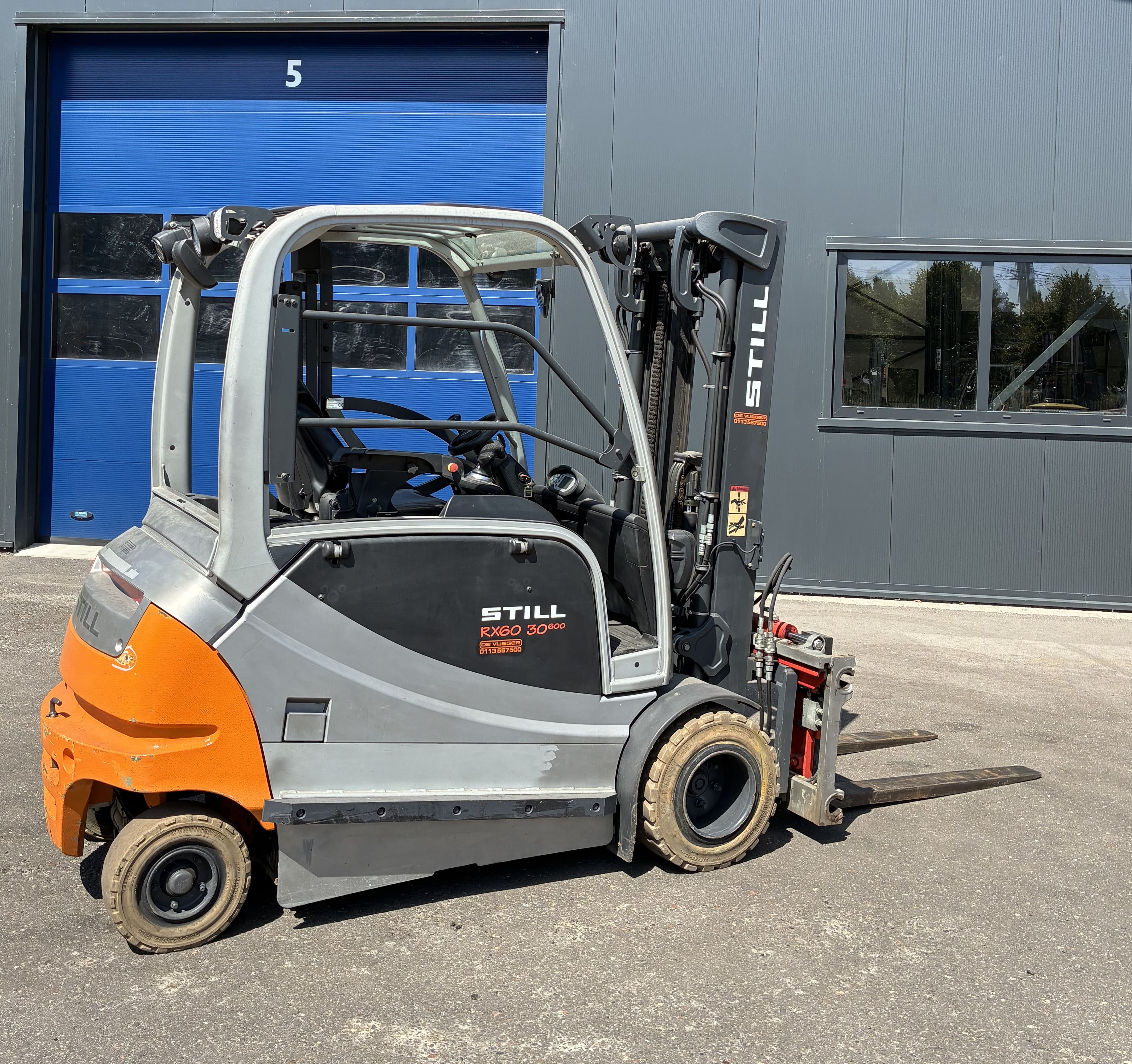 Zeer rijk uitgeruste STILL RX 60-30/600 met lage urenstand - triplo mast - joystick bediening - 4 hydraulische functies - dakruit - non-marking banden - leren stoel - stoelverwarming - elektrische parkeerrem - schijnwerpers - blue spot - miniconsole - buitenspiegels.